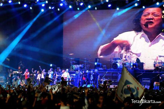Para macan tua yang digawangi Iwan Fals, Setiawan Djody dan Sawung Jabo di Stadion Gelora Bung Karno, Jakarta,